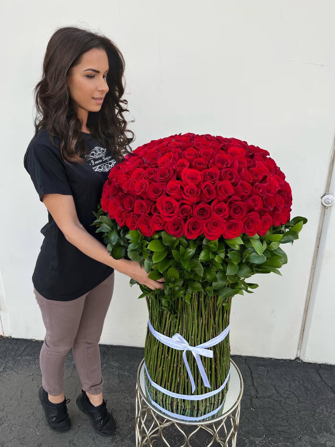 225 Fresh Roses in a Standing Signature Bouquet. The Grand Bouquet does not require a vase!