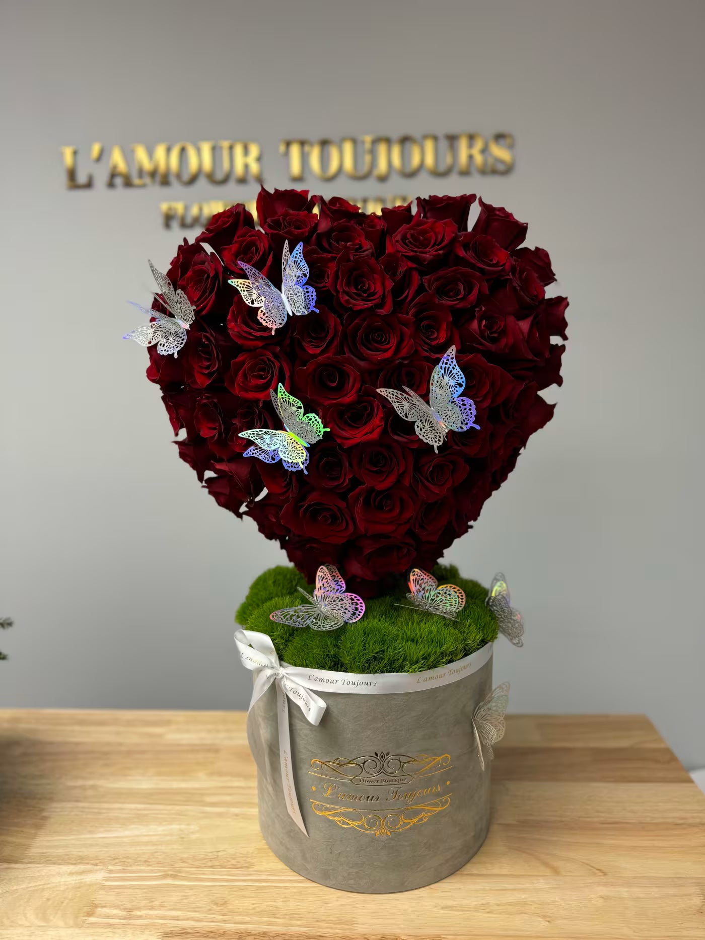 The Rose Heart is standing at 1.5 feet tall decorated with 50-60 roses and butterflies