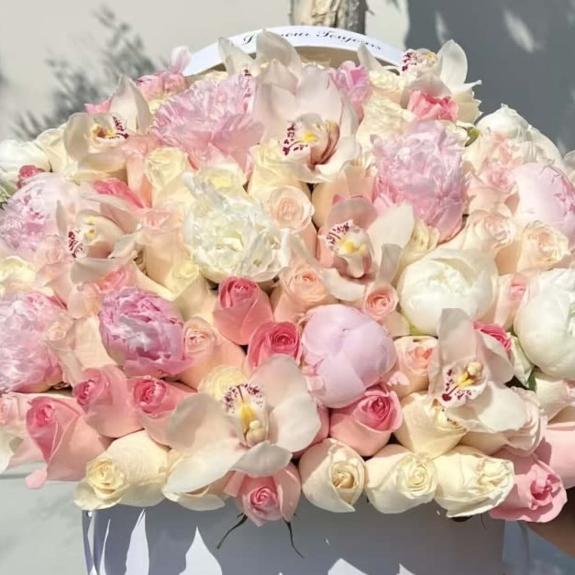 100 Premium roses exquisitely paired with peonies and cymbidium orchids.